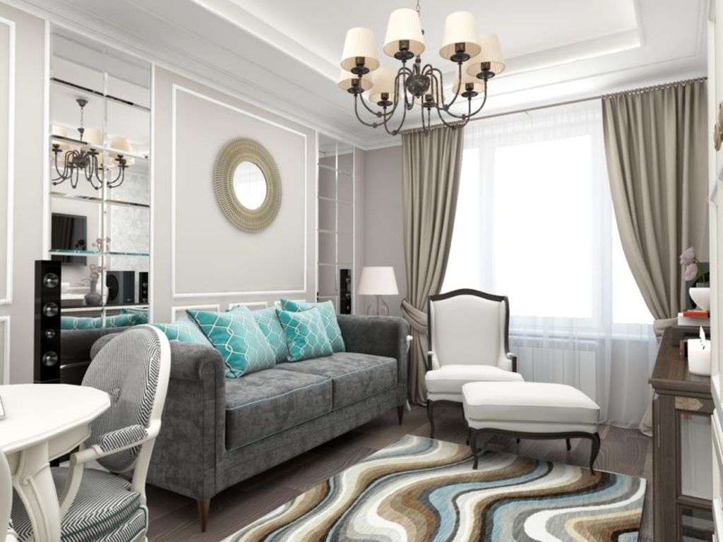 Дизайн гостиной 16 кв. м в однокомнатной квартире