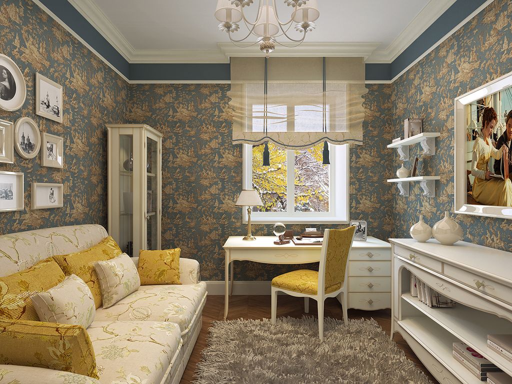 Используется для маленьких комнат и классический стиль. Он предполагает наличие семеричных форм, лаконичной мебели и светлых оттенков.