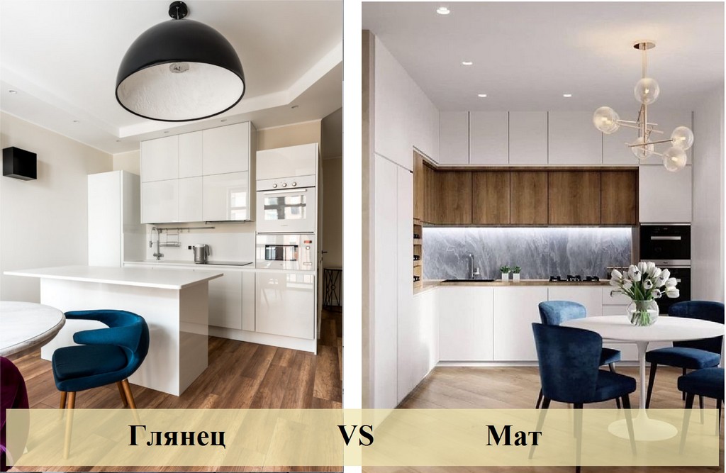 | Мода | Тренд на естественность диктует свои правила – матовые смотрятся более органично и не раздражают своим активным блеском. Матовые поверхности сейчас более актуальны. | Ориентироваться на моду стоит, если это не противоречит здравому смыслу. Если просто необходима нарядность, или использование глянца продиктовано выбранным стилем (арт-деко, например), то почему бы не отдать предпочтение ему? |