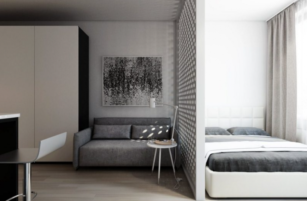 Дизайнеры придумали несколько методов разделения пространства. Обычно помещения с зальной и спальной зоной не имеют чёткого обозначения функциональных сегментов. Раскладной диван может использоваться для отдыха и сна. Также существуют спальни-трансформеры: производители мебели выпускают изделия, которые по необходимости меняют своё назначение. Например, существуют шкафы, в которые встроена кровать. Она может опускаться из части самого гардероба или выдвигаться из ниши мебели. Такие многофункциональные предметы помогают сохранить немало свободного пространства.