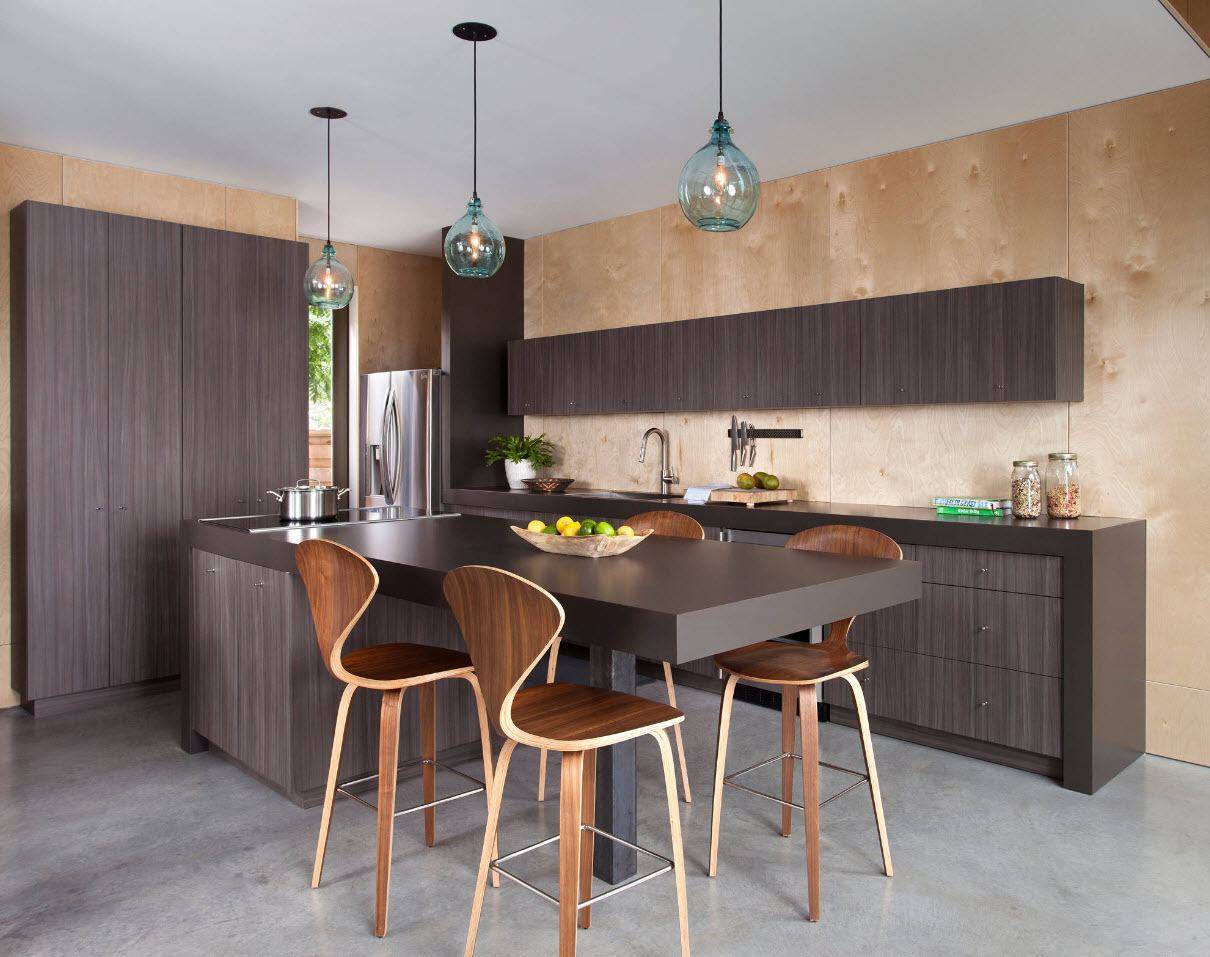 В следующем фото-слайдере можно рассмотреть интерьер кухни с полуостровом, который является продолжением гарнитура и используется только как рабочий стол и барная стойка.