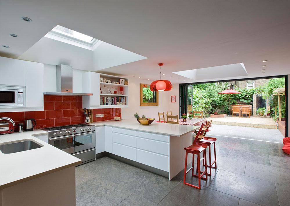 Если кухня 18 кв. м. в доме используется только для приготовления пищи и не несет функцию столовой или гостиной (она утилитарна), на ней есть смысл расположить остров. Просторный остров может выполнять функцию стильной барной стойки и служить местом перекусов для домочадцев.