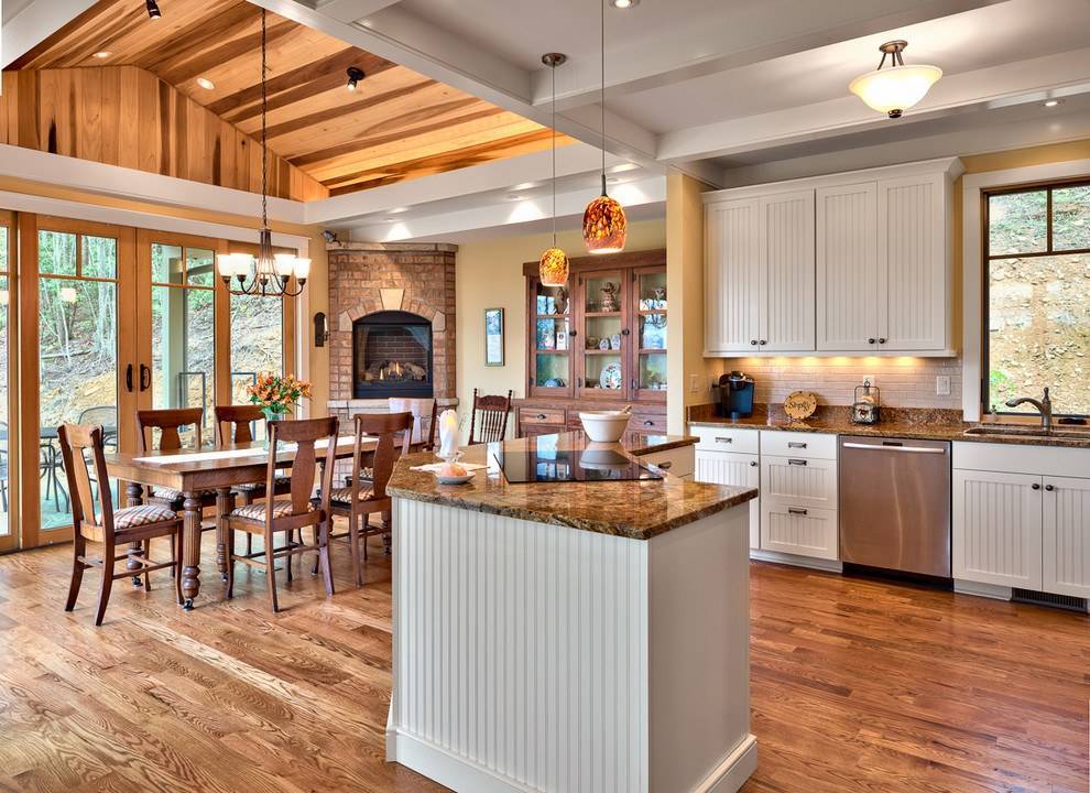 Возможностей оформить интересный интерьер в кухне, находящейся в доме, значительно больше. Как правило, в доме много комнат и нет необходимости их совмещения в погоне за дополнительной площадью для кухни.