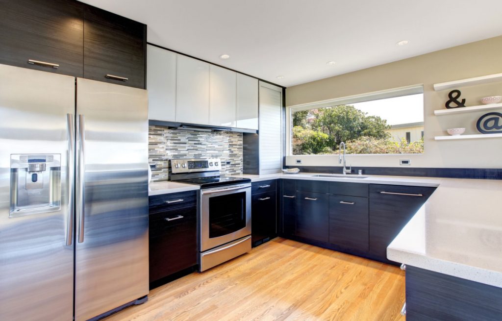 Также модно размещать бытовую технику на уровне глаз. Какую кухонную технику выбрать в 2020 году? Прежде всего, с простой формой, темными цветами и ненавязчивыми декоративными элементами. В случае кухонной компоновки 2020 с полной стенкой шкафов, без углубления под раковину, они обычно располагаются в центральном месте непосредственно за кухонным островком. В ситуации, когда на кухне запланировано углубление, приборы размещаются сбоку, справа или слева. Минималисты и любители порядка могут спрятать кухонную технику, такую как холодильник или духовку, в шкафу за дверью или в мебельной стойке, закрытой раздвижной дверью.