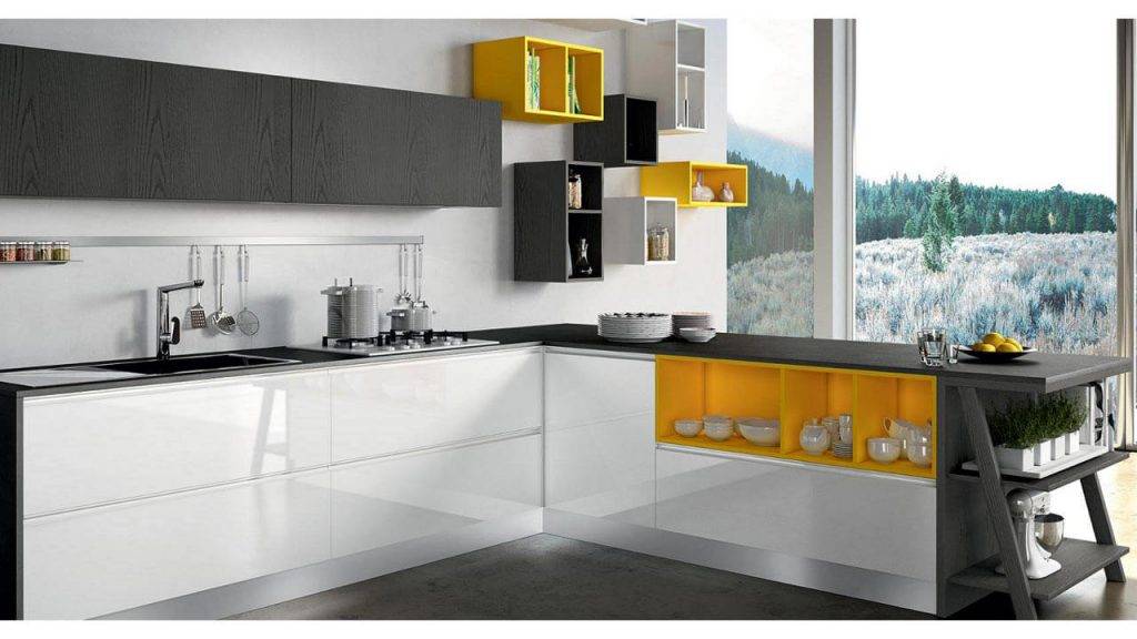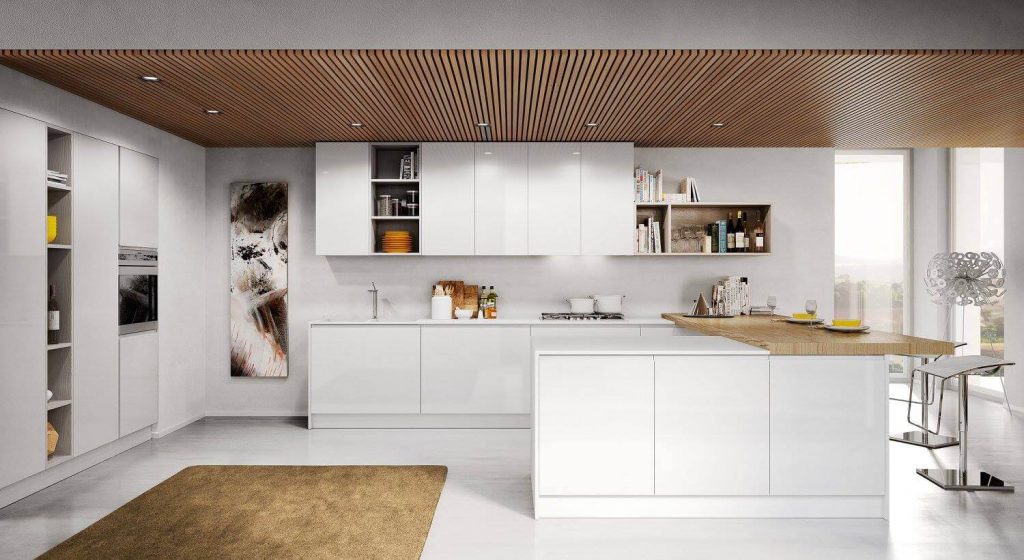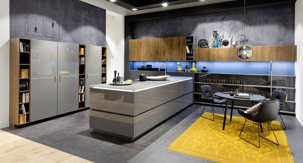 Проекты кухни на 2020 год предполагают создание мебели либо с нижними шкафами и кухонным островком, либо наоборот — с цельной стеной и кухонным островом перед ним. В последнем случае выбираются кухонные ниши. Что появится между шкафами на кухне 2020 года? В настоящее время в шкафах встроена целая стена, и в центре вырезан только квадрат или прямоугольник, в котором размещен небольшой участок столешницы с раковиной и плитой. Благодаря этому наименее элегантная часть кухни «прячется» в нише от глаз людей в гостиной или столовой.