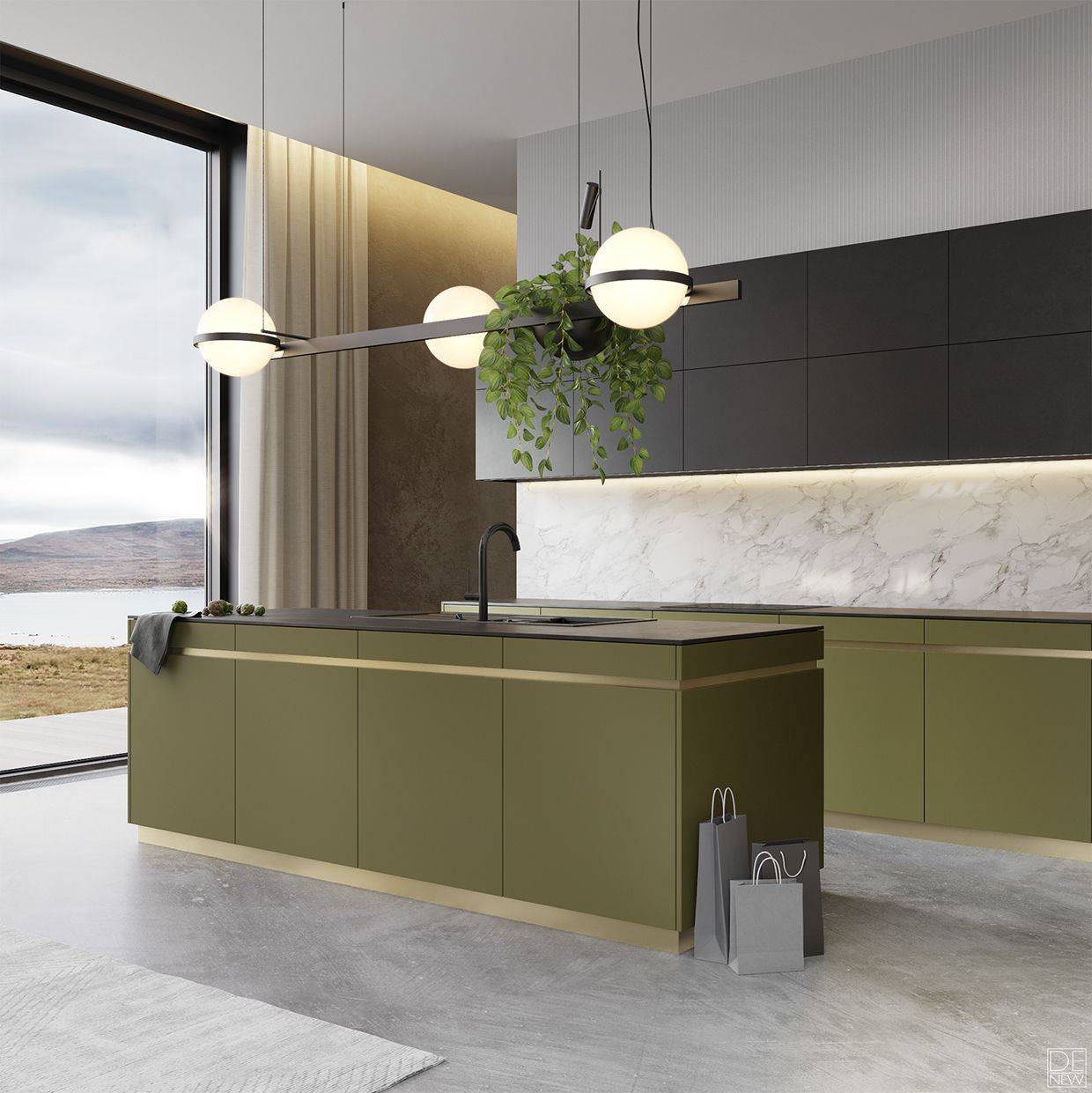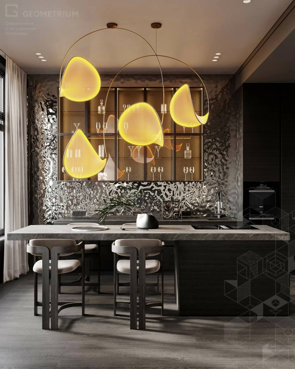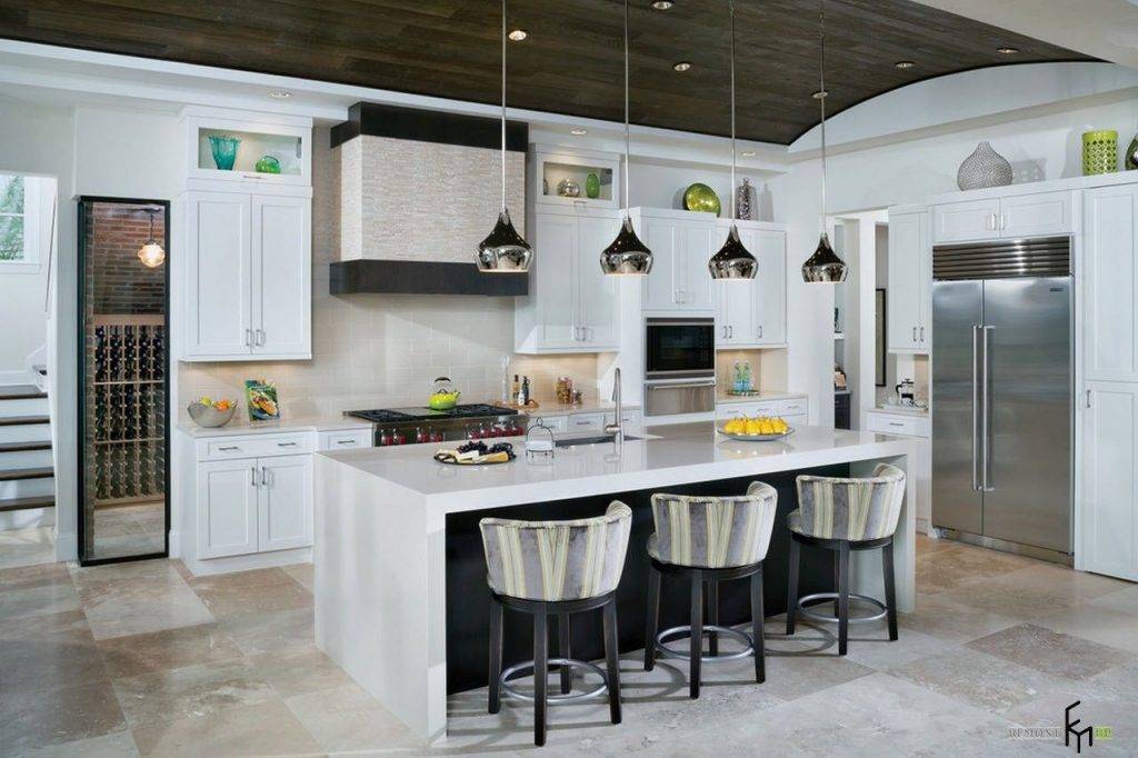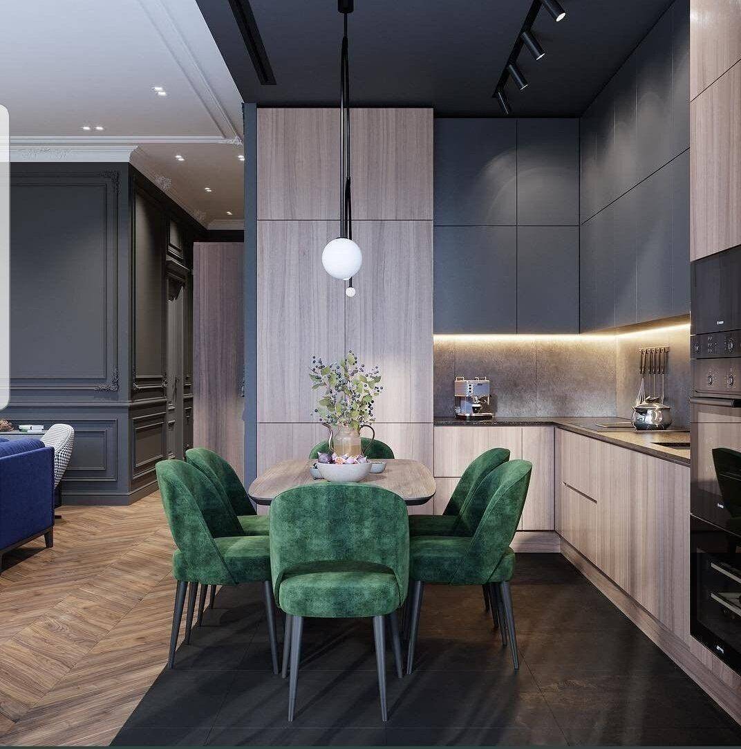 Модный дизайн кухни 2023 проще реализовать в просторном помещении.