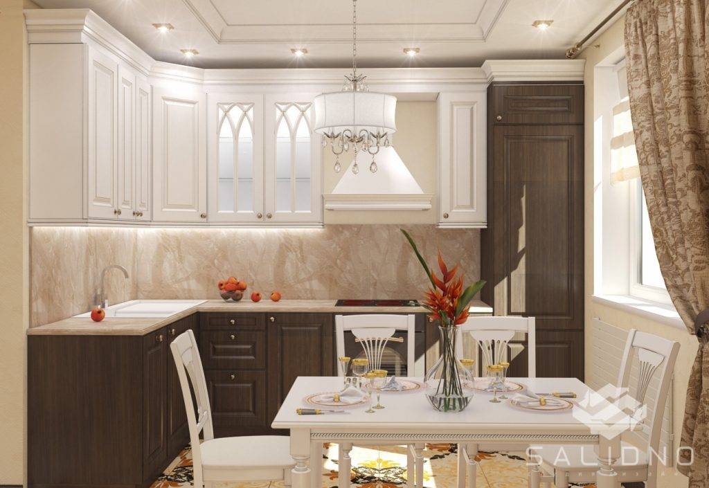 Симметричные линии, мягкое свечение и теплые оттенки с золотистыми акцентами сделают кухню в классическом стиле образцом настоящей гармонии. Подобная обстановка будет вполне уместна в маленьком пространстве, визуально увеличит и украсит его.