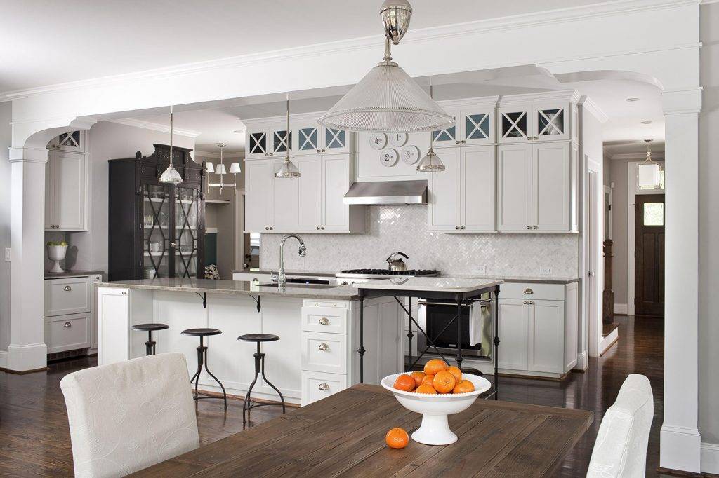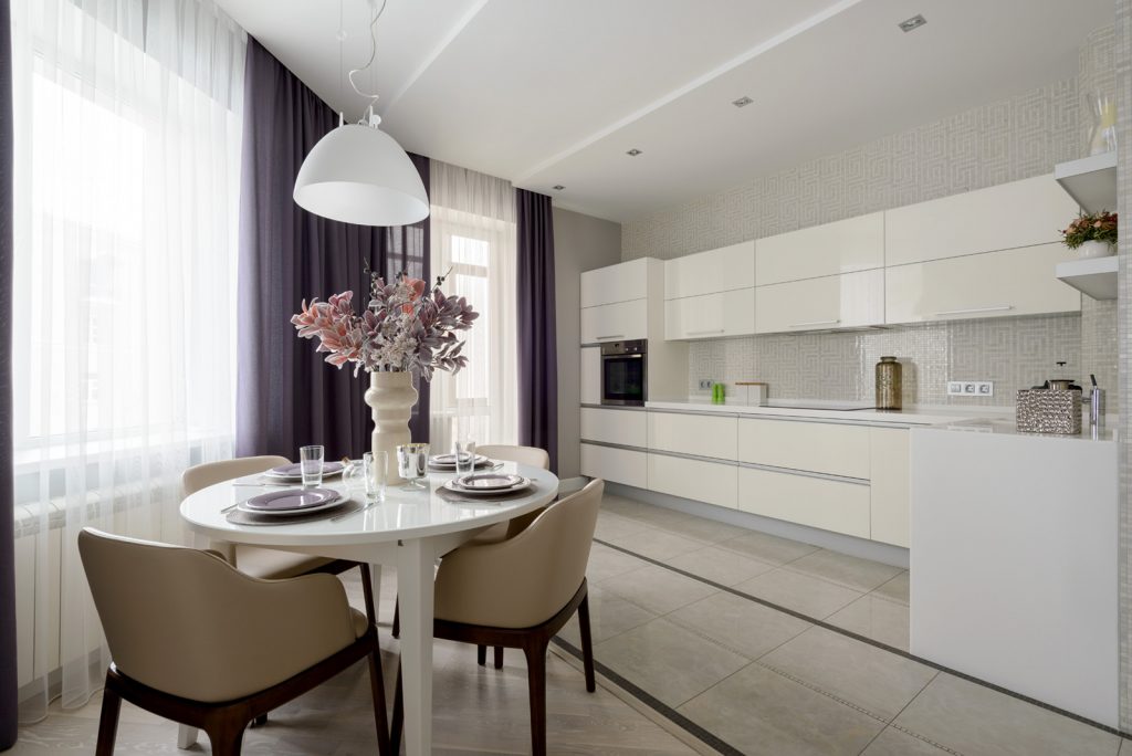 Это не только визуально расширит пространство, но и позволит разделить кухню на несколько зон.