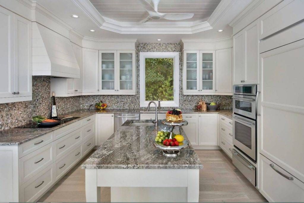 Высокой надежностью и долговечностью обладают покрытия из керамической и мозаичной плитки, а также натурального и искусственного камня. Чаще всего, такое покрытие обеспечивается на рабочих участках и в районе варочной плиты.