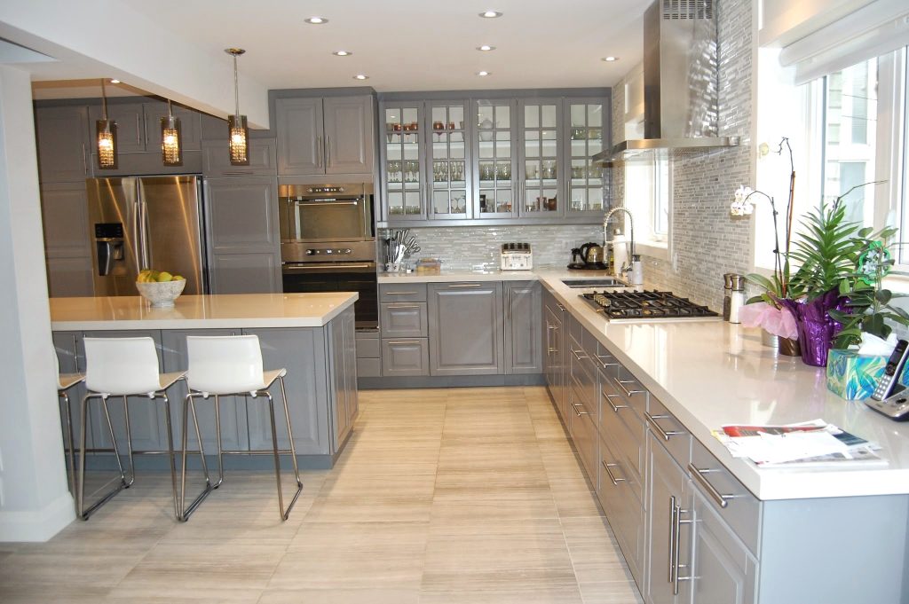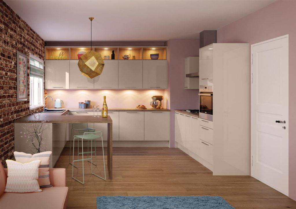 - Верхние шкафы до потолка или отсутствуют (во втором случае нужен вместительный кухонный остров).