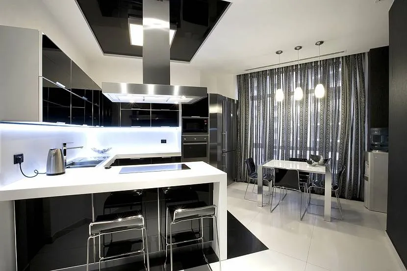 Небольшая угловая кухня в стиле хай-тек с барной стойкой в черно-белых тонахИсточник design-homes.ru