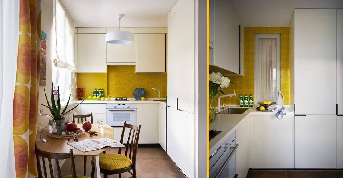 Современный интерьер маленькой кухни 6 кв. м. Фото стильной кухни