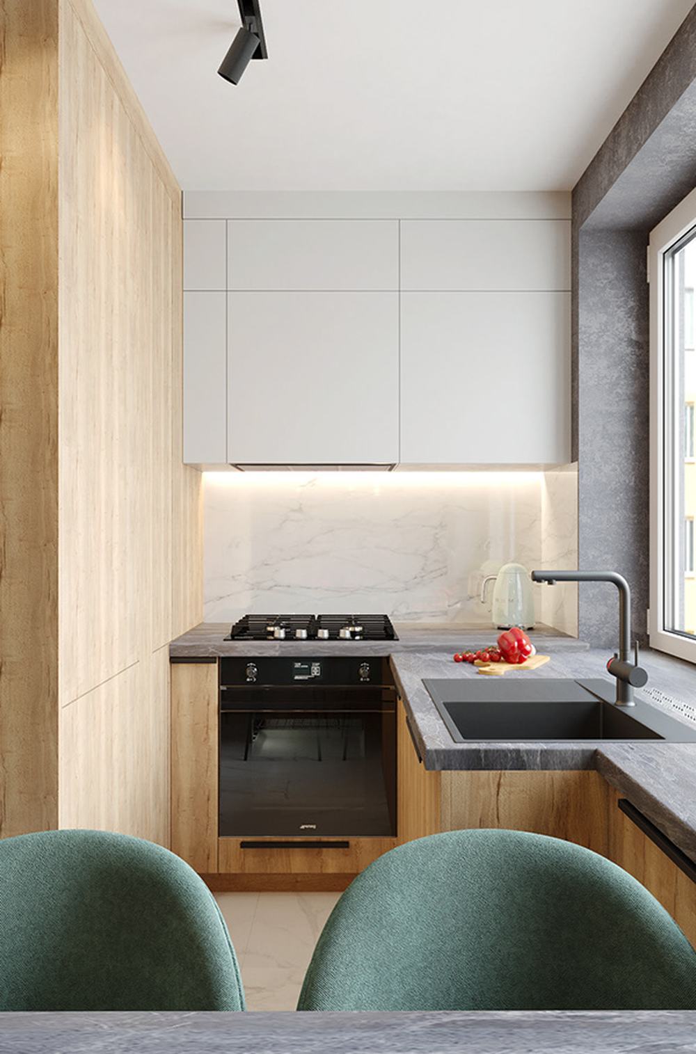 Лаконичный дизайн, встроенная бытовая техника и сдержанные, но функциональные предметы визуально сделают даже самую маленькую кухню более просторной и свободной.