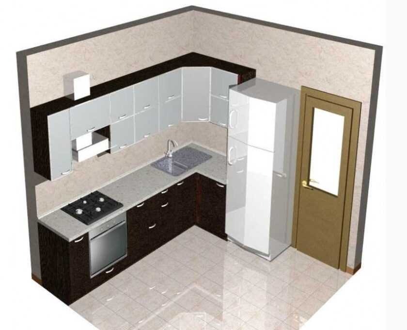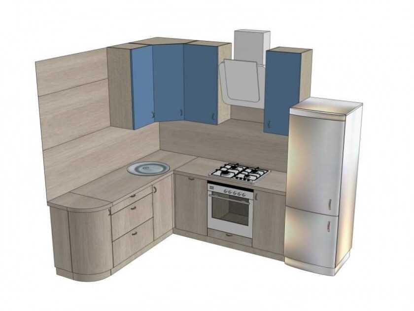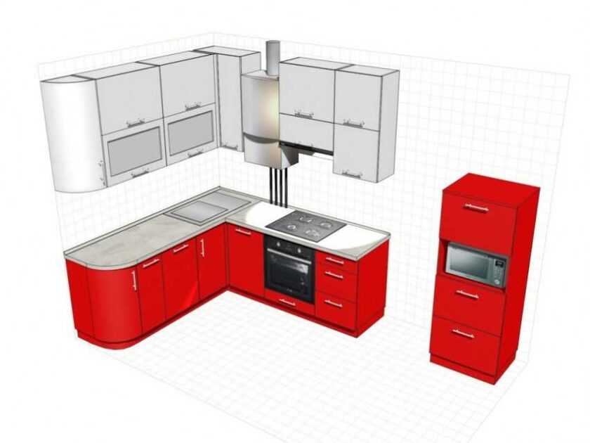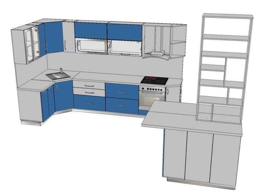 Если кухня с углом и короткой стороной, вешайте шкафы по длинной стороне.