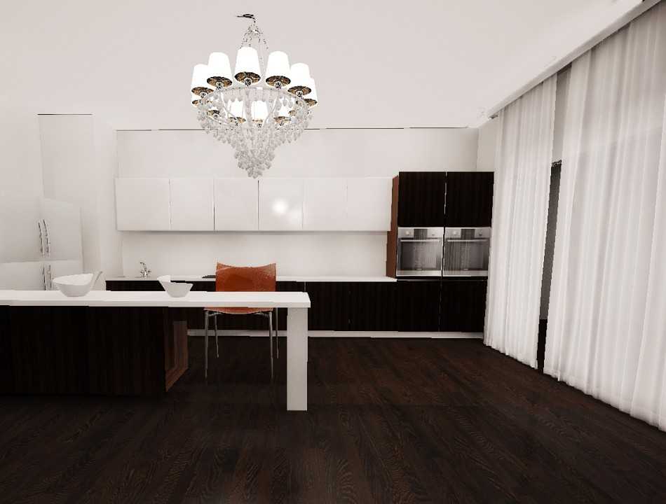Черно-белое сочетание в дизайне интерьера Источник design-homes.ru/ Такая планировка станет отличным вариантом для молодой семьи с маленькими детьми. Таким образом кухня скромных размеров превращается в удобную и уютную гостиную. Чтобы визуально разделить пространство на отдельные зоны, используют: