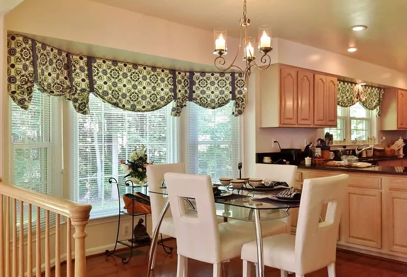 Эти изделия представляют декоративный элемент, который украшает верхнюю часть оконного проема. Можно сказать, что это короткая расположенная горизонтально штора.