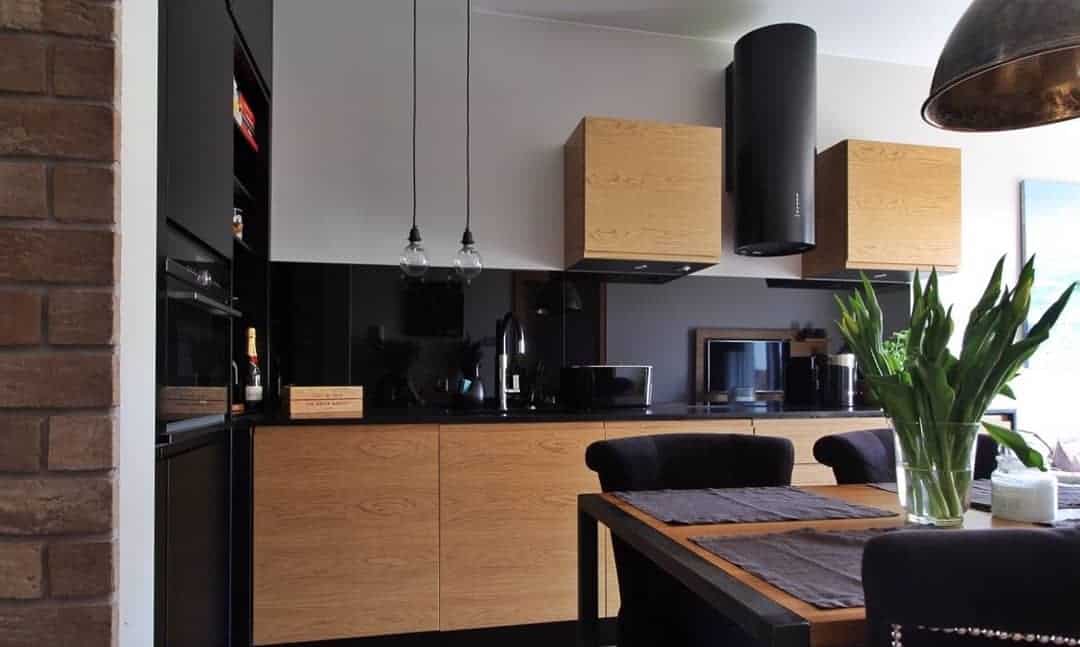 - Декорировать стены и пол кухни деревянными панелями. Выбор дерева в качестве отделки не случаен. Натуральный материал формирует на кухне благоприятный микроклимат и отвечает за неброский, минималистичный дизайн.