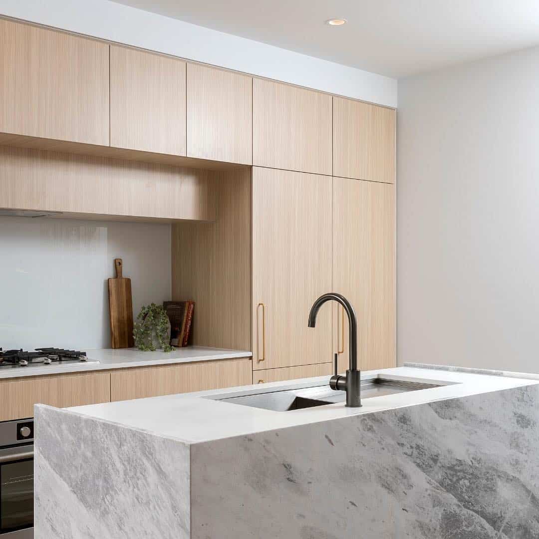 Общемировая тенденция к природным формам и просторным светлым интерьерам привела к большому ажиотажу вокруг кухонь, облицованных деревянными панелями.