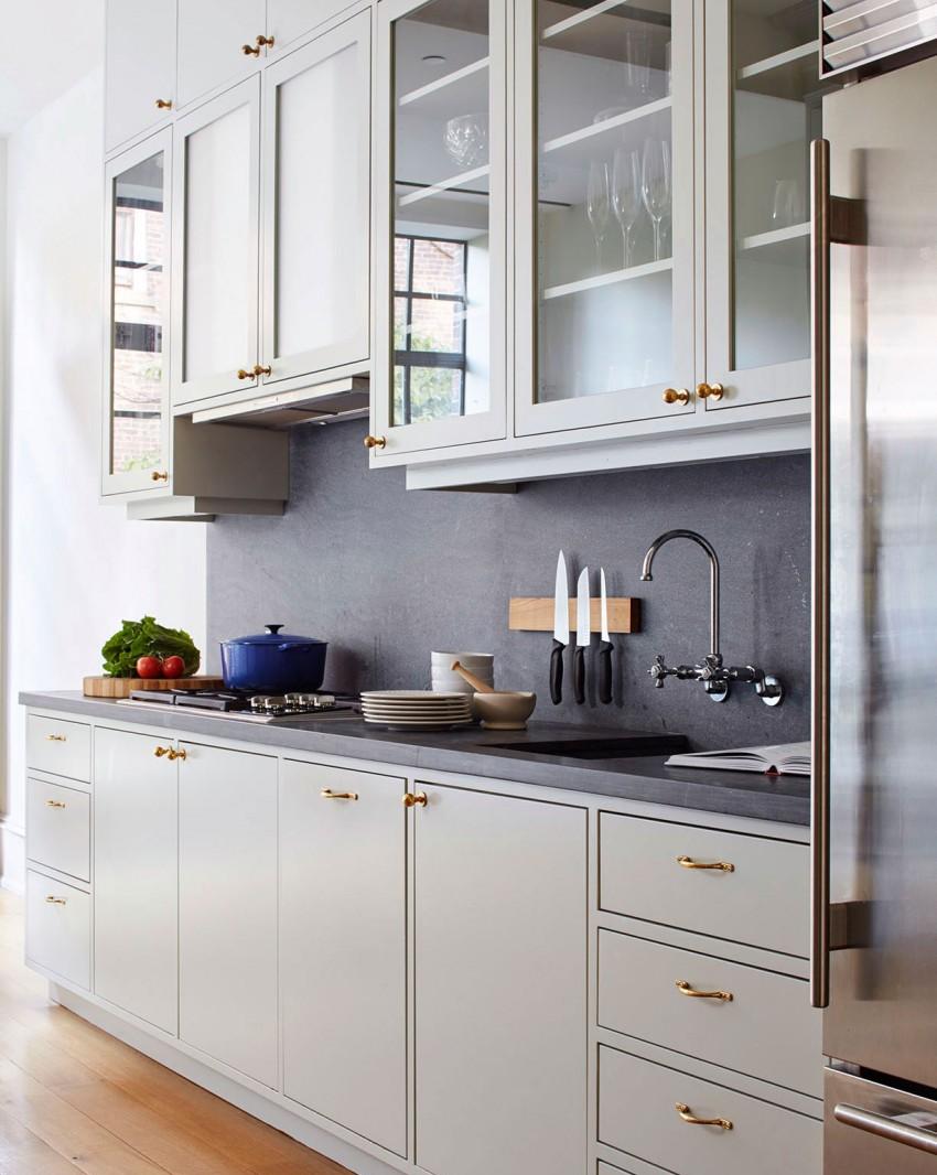 Акцент создайте на кухонном фартуке в рабочей зоне. Подберите небольшую квадратную плитку, панно с пейзажами или натюрмортами или деревянную панель.