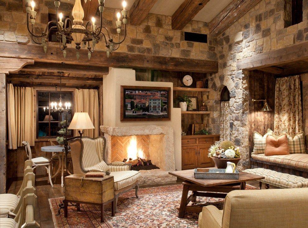 - отлично в таком интерьере смотрится камин, арочные окна и двери.