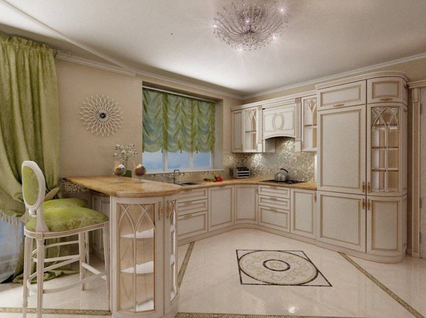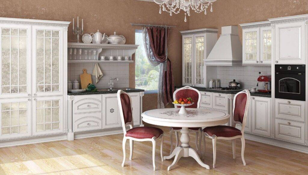 Ремонт кухни в классическом стиле: отделочные материалы и текстиль
