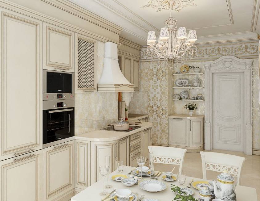 Высокие потолки: согласитесь, сложно представить себе, например, роскошный классический стиль кухни в квартире-хрущевке со всеми атрибутами классицизма: лепниной, дубовой мебелью и роскошной хрустальной люстрой, которая больше мешает перемещениям по комнате, нежели освещает её; -