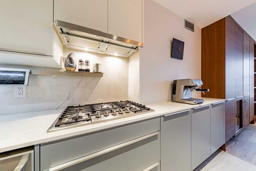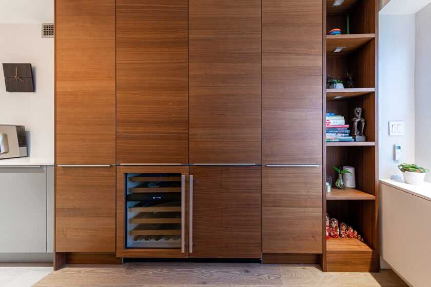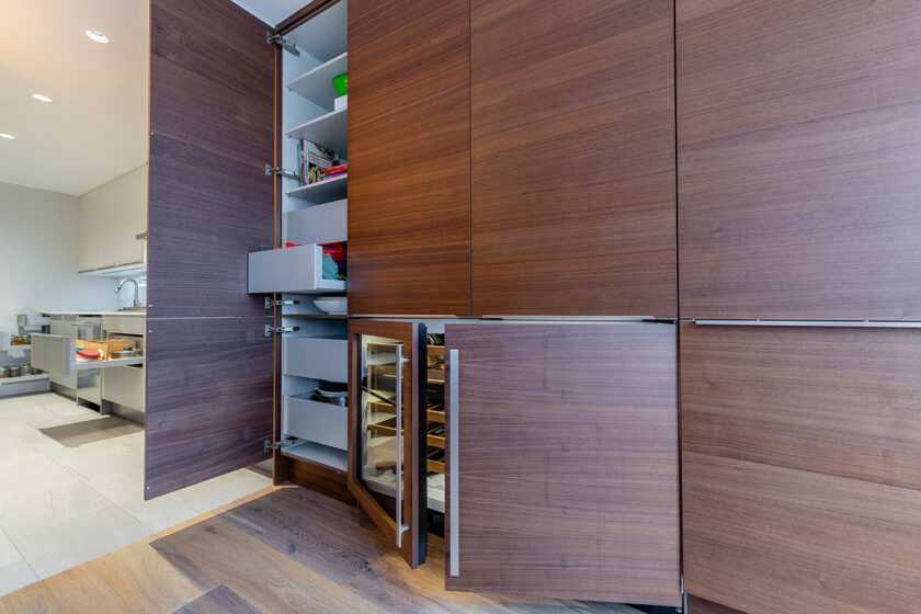 Здесь можно вмонтировать небольшой холодильник или дополнительные шкафы и секции.