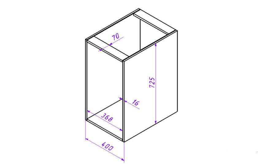 Бока, дно и полка рассчитываются аналогично предыдущим шкафчикам