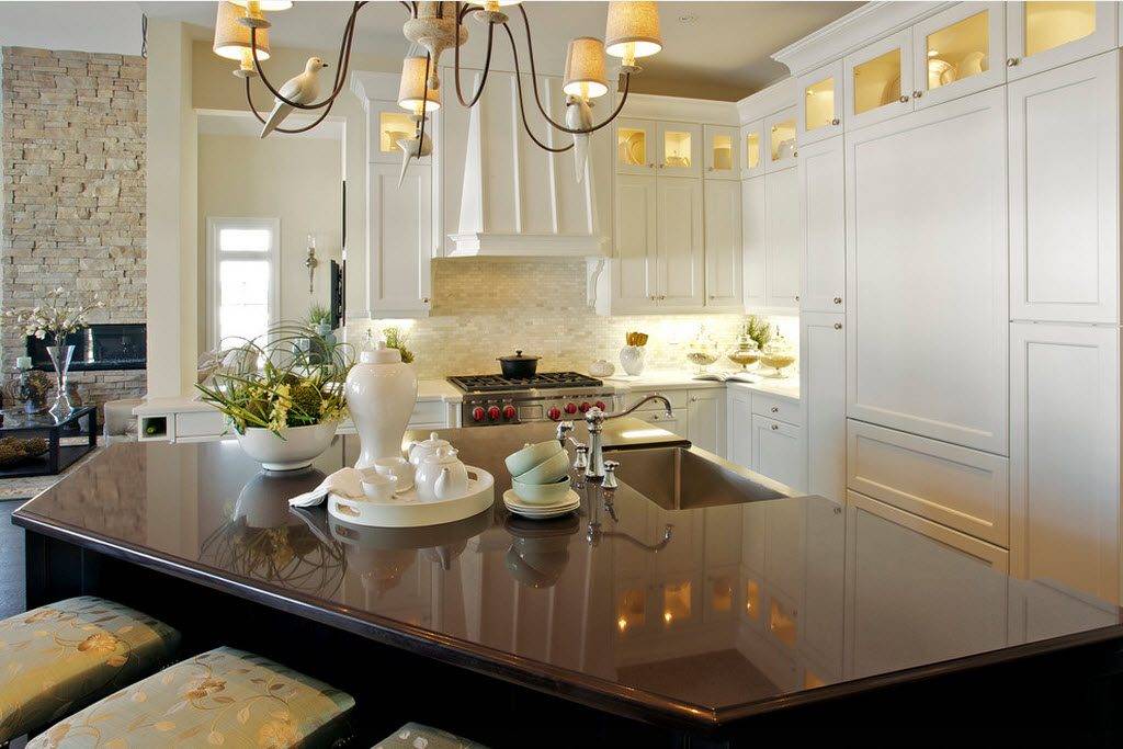 Устанавливают рядом высокие стулья, и романтическая обстановка обеденной зоны становится жемчужиной всего кухонного интерьера 2020.