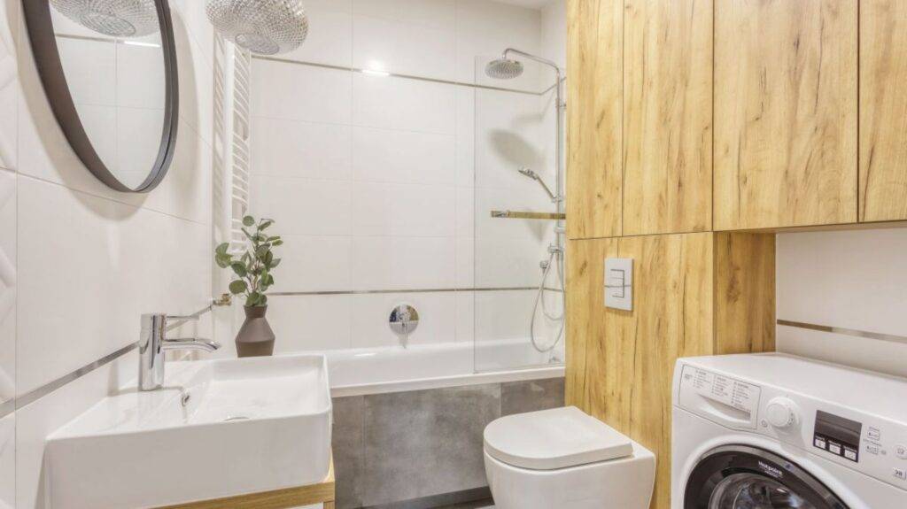 Важно подобрать подходящее место для стиральной и сушильной машин, потому что в большинстве случаев эту технику размещают в ванной. Необходимо обеспечить удобный доступ к машине