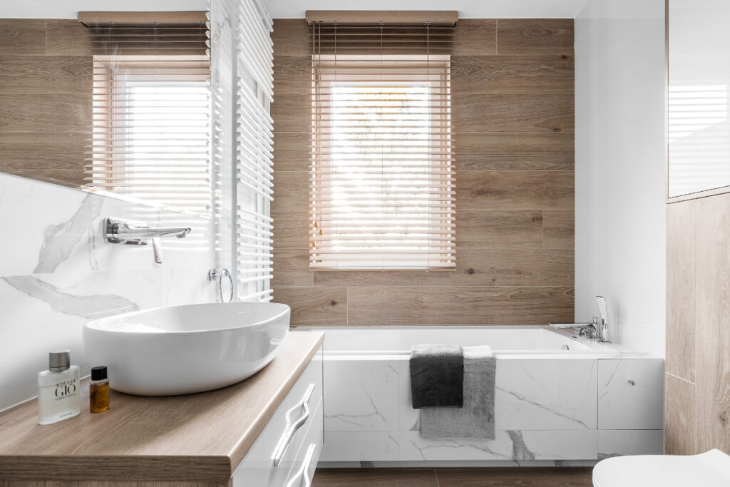 Мелкие детали, средства гигиены и предметы интерьера лучше скрыть за дверцами шкафов