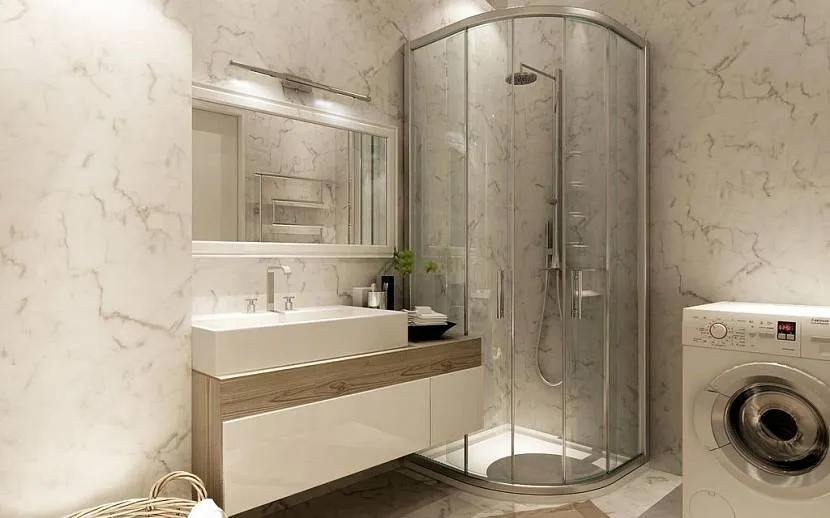 Ванная со стиральной машинкой и душевой кабинойИсточник roomester.ru