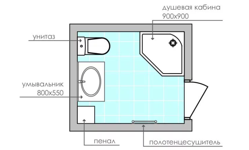 Без ущерба для компоновки сантехники и визуального восприятия комнаты, если есть возможность, лучше установить душевую кабину или угловую ванну. Оба варианта обеспечивают установку приборов в максимально эффективном варианте со значительной экономией места в комнате.
