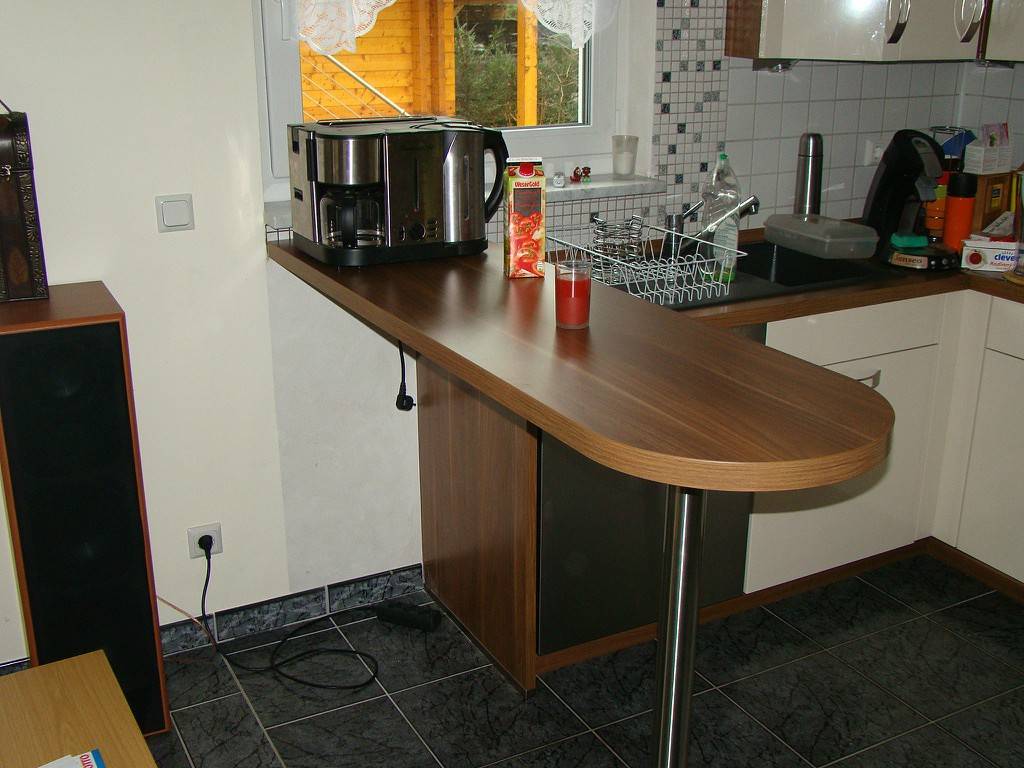 Барная стойка может служить полноценным столом или дополнительной рабочей поверхностью