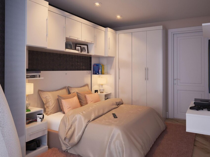 Неважно, где расположено помещение – в частном доме, или в хрущевке, если спальня небольшая, следует использовать несколько общих рекомендаций, которые помогают нивелировать недостаток пространства. Можно выделить несколько конкретных решений, применяемых чаще всего:. Белый – визуально расширяет пространство, стирает грани между стенами и, при правильном использовании, стильно оттеняет мебель и другие элементы оформления