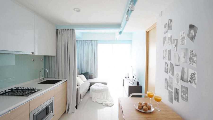 Чаще всего, малогабаритное жилище имеет совсем маленькое помещение для приготовления пищи, поэтому стоит обставить его максимально функционально. Обычно, рядом с кухней располагается ванна, совмещенная с санузлом, несколько метров которой можно отделить в пользу кухни.