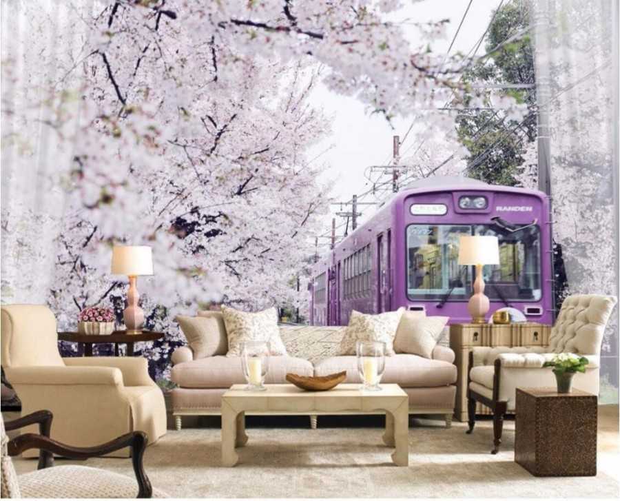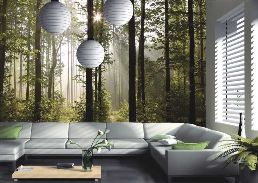 Фотообои используются в дизайне уже более 40 лет. За это время их качество значительно улучшилось. Возросла не только четкость, детализация и цветовая насыщенность изображения, но и их доступность. Некоторые фирмы предоставляют возможность заказать красивые обои в зал со своих фотографий. Это один из наиболее распространенных способов зонирования помещения. Выбор изображения зависит от стиля и тематического оформления интерьера. Традиционно фотообои размещаются на стене примыкающей к зоне отдыха или на стене противоположной от неё для хорошего обзора. Использование фотообоев с 3D-изображениями, особенно с перспективой визуально увеличивает объем помещения не менее чем в полтора раза.