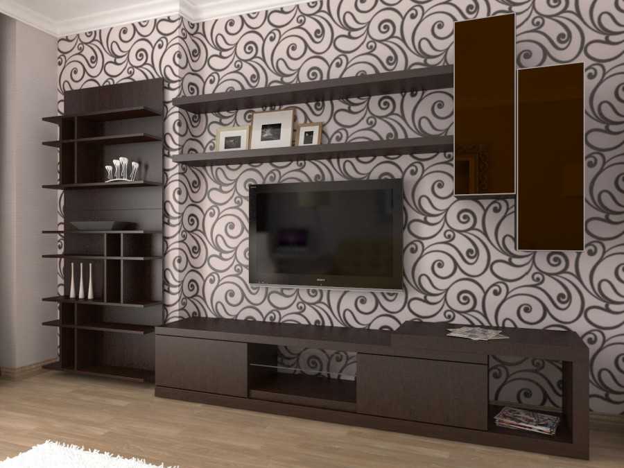 С помощью разноцветных обоев выделяют различные зоны в гостиной: под телевизор, диван, столовую. Это придаст завершенный вид и спасет от загромождения различными предметами интерьера, такими как перегородки и шторы, меблировка.