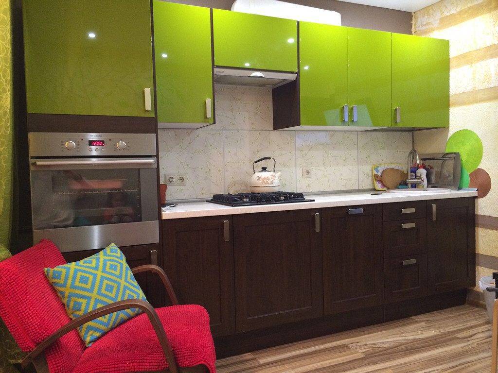 в линию — это распространенный вариант, когда кухонный гарнитур вытянут вдоль одной стены, а у противоположной размещаются стол и стулья.