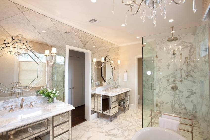 Визуально расширяют пространство большие зеркала и зеркальные поверхности, которые используются для отделки.