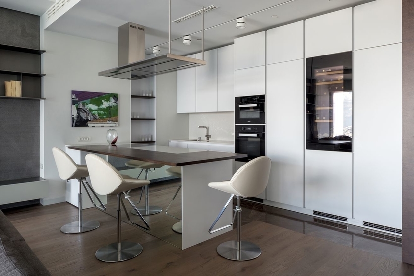 Многие люди ассоциируют белый цвет с особой легкостью и чистотой. Кухни такого цвета приятно удивляют своей вместительностью, а иногда кажется, что даже воздух внутри них чище.