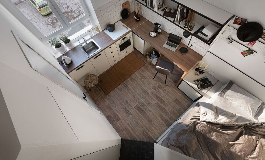 Перед началом ремонта квартиру-студию делят на несколько функциональных зон. Главная сложность дизайна — продумать интерьер и функционал каждой из них по отдельности, одновременно сочетая все области в гармоничную композицию.