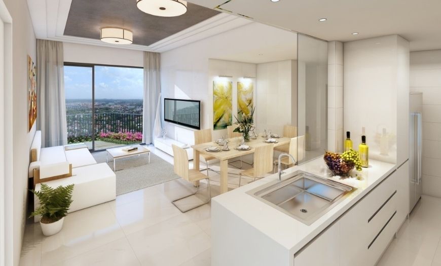 Белая мебель в гостиной добавляет свежести и лёгкости интерьеру