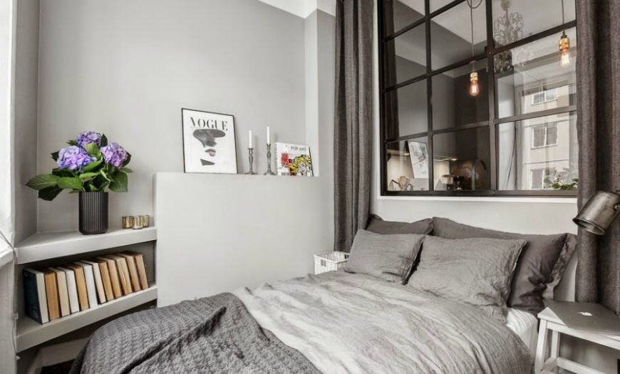- Стена в форме окна с подоконником, отделяющая спальную зону от дневной зоны.