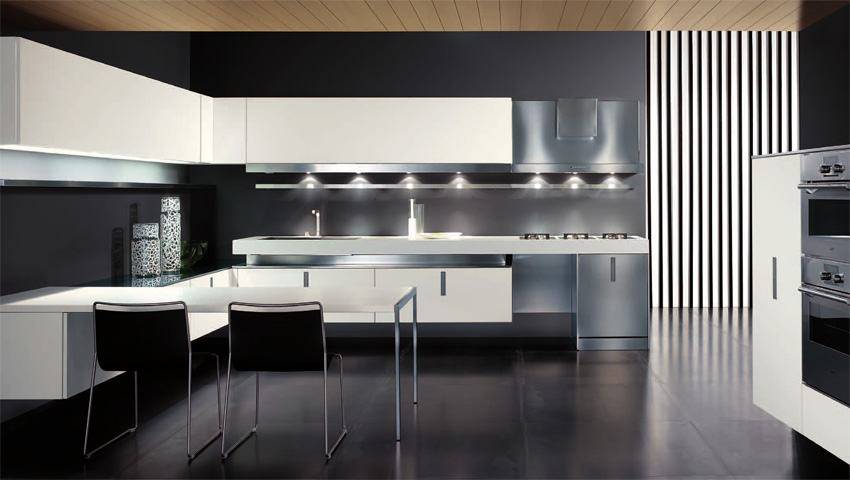 Современный интерьер кухни 11 кв. метров в минималлистическом стиле
