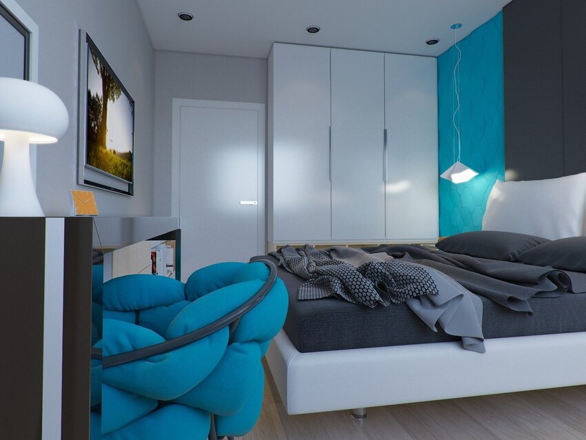 Психологи уверены, что оттенки синего способны охлаждать организм и успокаивать нервную систему. Такое оформление будет уместно в помещении, где обычно жарко. Кроме того, этот цвет помогает рассеивать излишнюю энергию и способствует засыпанию.