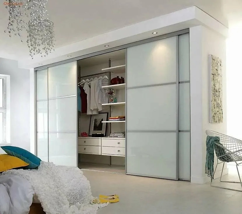 Идеальным местом для хранения вещей станет шкаф-купе. Мебель такого плана очень вместительна и места занимает немного.