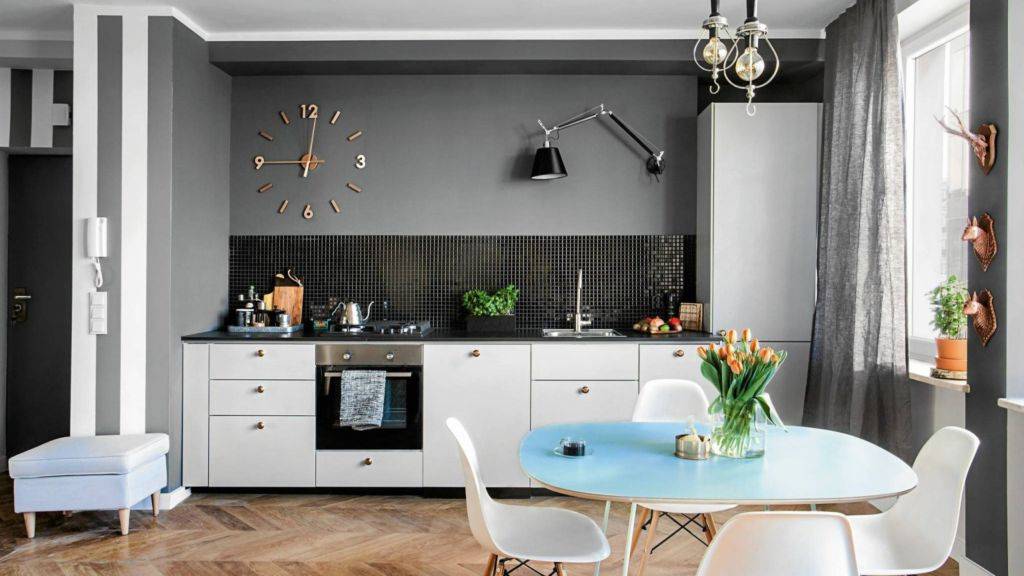 Они помогут расширить пространство. Чтобы исключить негативное влияние оттенка на подсознание, не выбирайте яркие. В помещении с кричащими тонами будет некомфортно находиться длительное время, будет присутствовать постоянное чувство давления со стороны. Если к интерьеру и дизайнерскому варианту подходит темный оттенок, не спешите использовать его в маленькой кухне. Вы визуально уменьшите пространство. Такое решение подойдет для кухни большого размера.