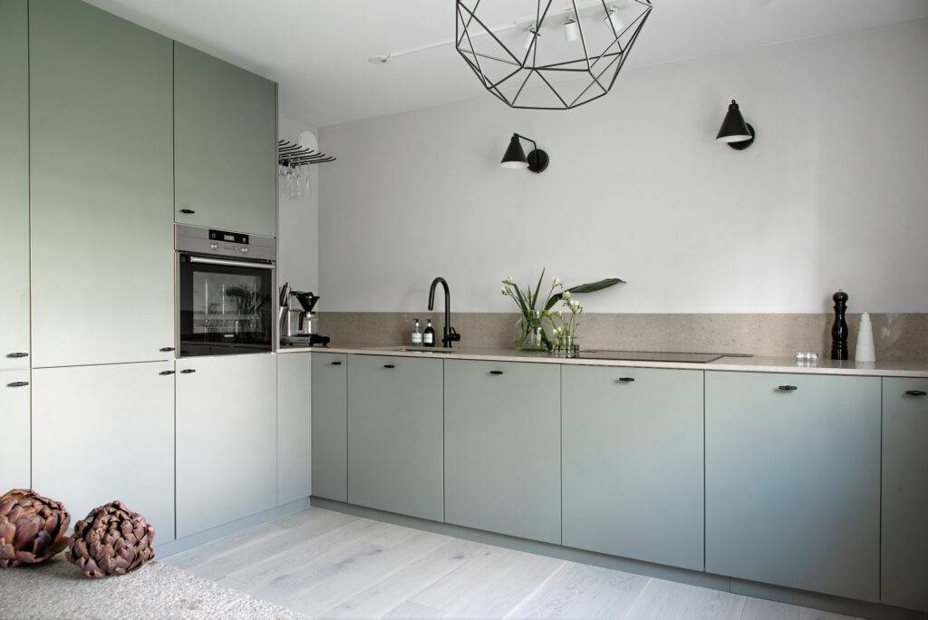 Бесшовный пол обеспечит максимальный комфорт — это то, чего мы можем достичь, выбрав эпоксидную смолу, идеально подходящую для современных и минималистских интерьеров, пропитанный архитектурный бетон промышленного характера или «рулонный пол» — эластичное напольное покрытие. Последние лучше подойдут для закрытой кухни. Безусловно, это также самое экономичное предложение и, при необходимости, его легче всего заменить.