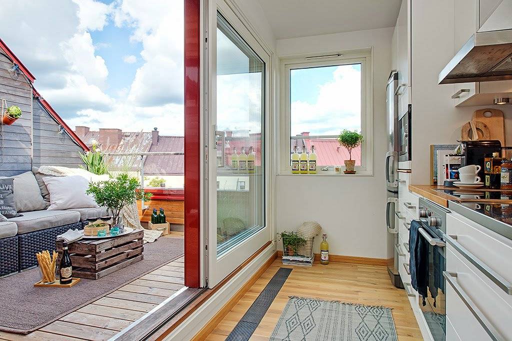 Хотите оригинальный интерьер кухни с балконом? Подумайте о возможности частичного объединения